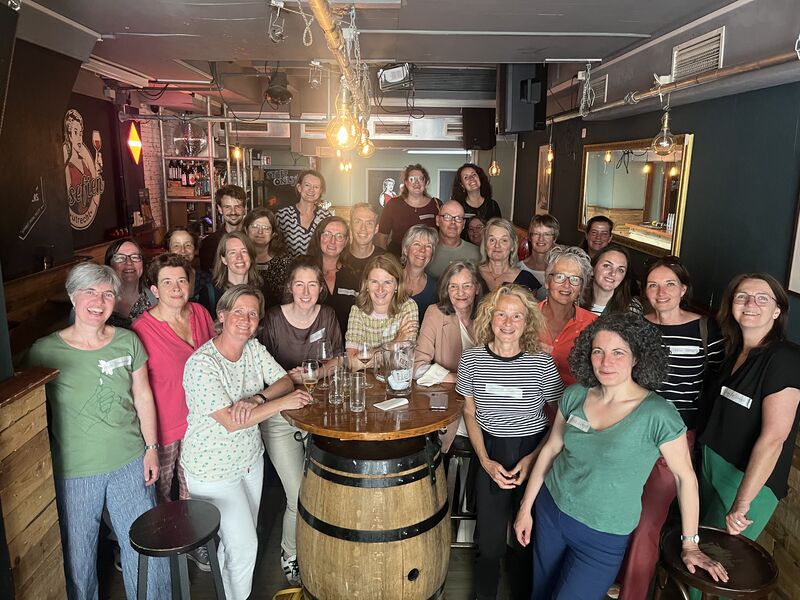 groepsfoto van alle mensen die op de borrel aanwezig waren